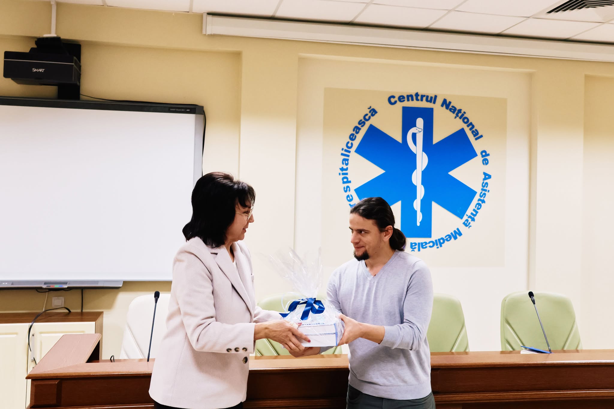 În cadrul evenimentului, Tatiana BICIC, directorul interimar IMSP CNAMUP a adresat un mesaj de încurajare tinerilor medici, subliniind importanța implicării și dedicării acestora în Serviciul de Asistență Medicală Urgentă Prespitalicească. Totodată, a evidențiat importanța responsabilității profesionale, a spiritului de echipă și a dedicării față de pacient, elemente fundamentale în activitatea zilnică a echipelor AMU.